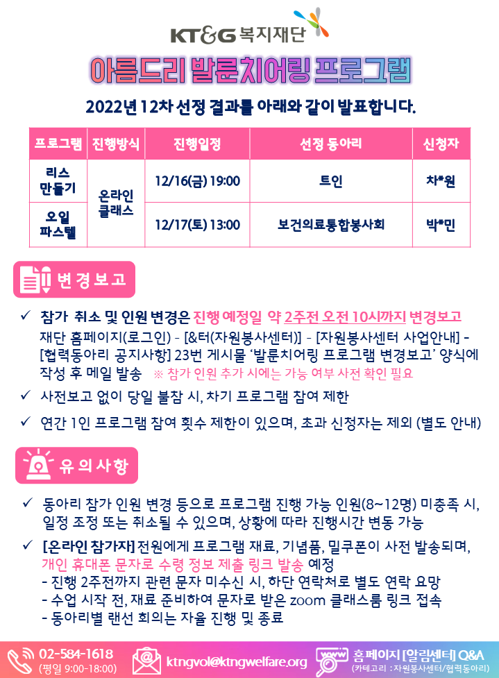 아름드리 발룬치어링 프로그램 선정_2022년 12차 [리스만들기, 오일파스텔]