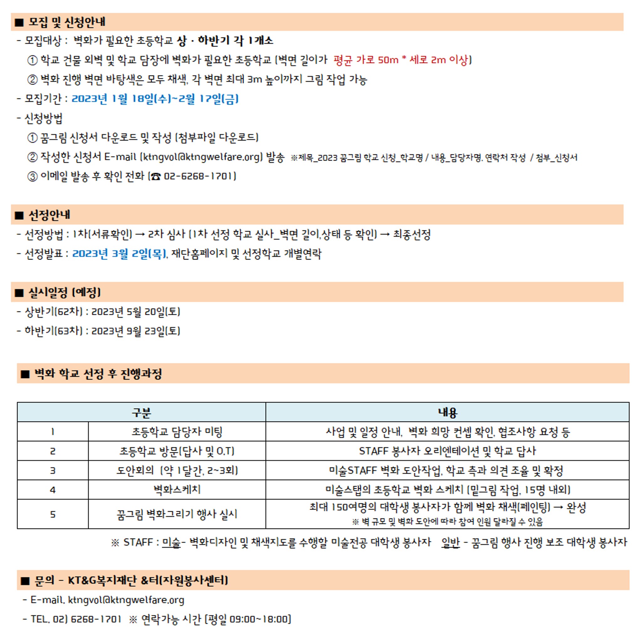 [학교모집] 2023년 아름드리 꿈그림 벽화그리기 진행 초등학교 모집 (~2/17)