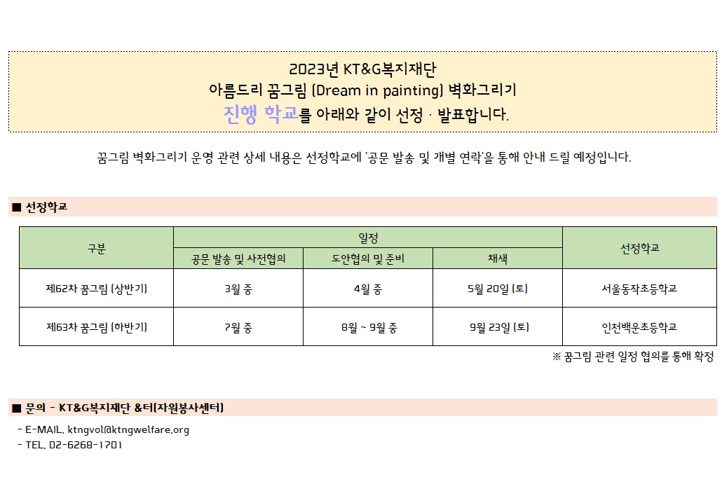 [학교발표] 2023년 아름드리 꿈그림 벽화그리기 진행 초등학교 선정 발표