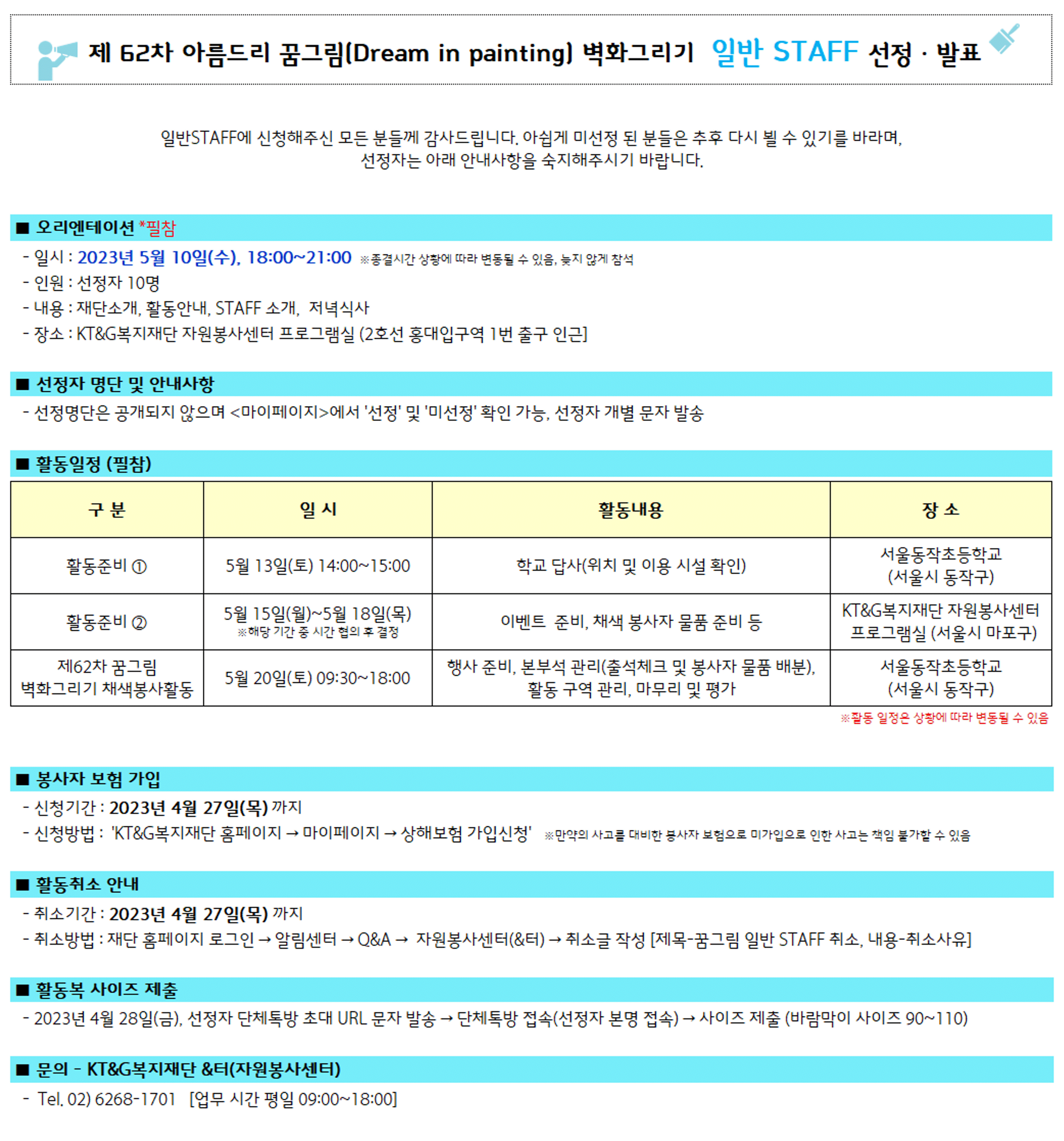 제62차 아름드리 꿈그림 [일반 STAFF] 선정발표