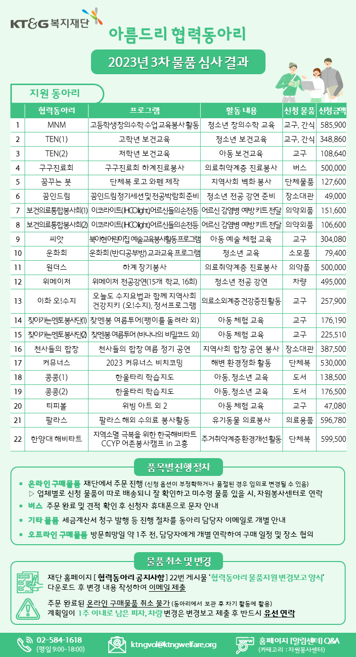[아름드리 협력동아리] 2023년 3차 물품 심사 결과