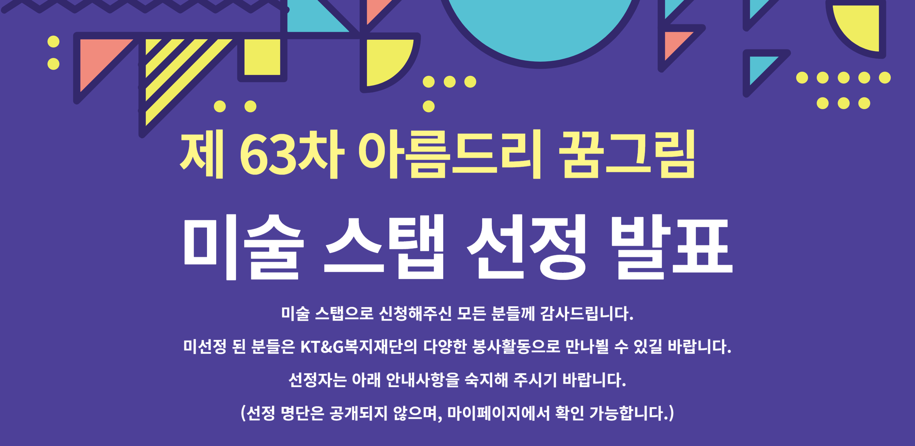 제 63차 아름드리 꿈그림 <미술 스탭> 선정 발표