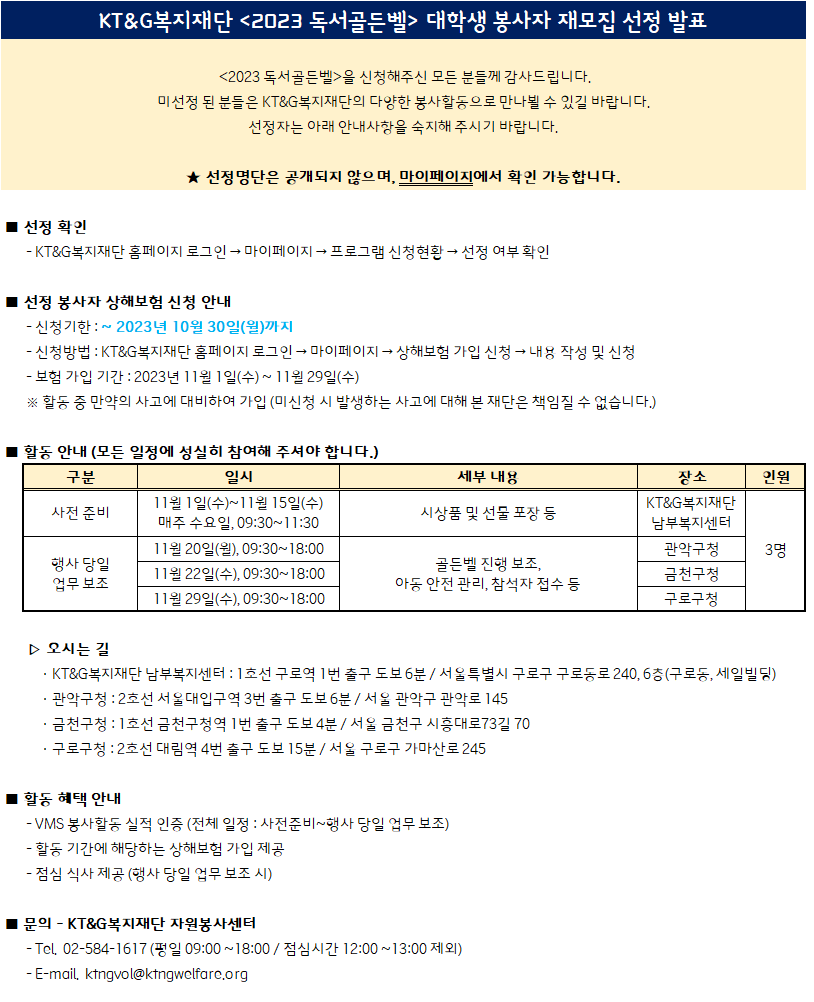 2023 독서골든벨 대학생 봉사자 재모집 선정발표