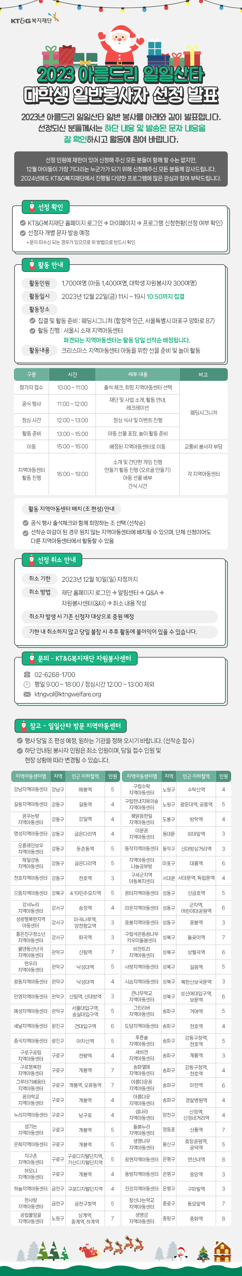 2023년 아름드리 일일산타 <일반 봉사자> 선정 발표