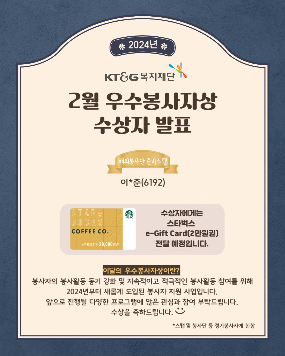 KT&G복지재단 2024년 2월 우수봉사자상 수상자 발표