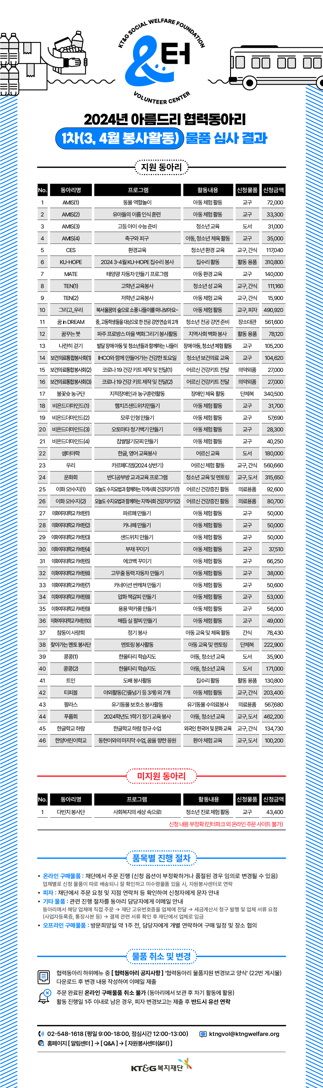 [협력동아리] 1차(3, 4월 봉사활동) 물품 심사 결과