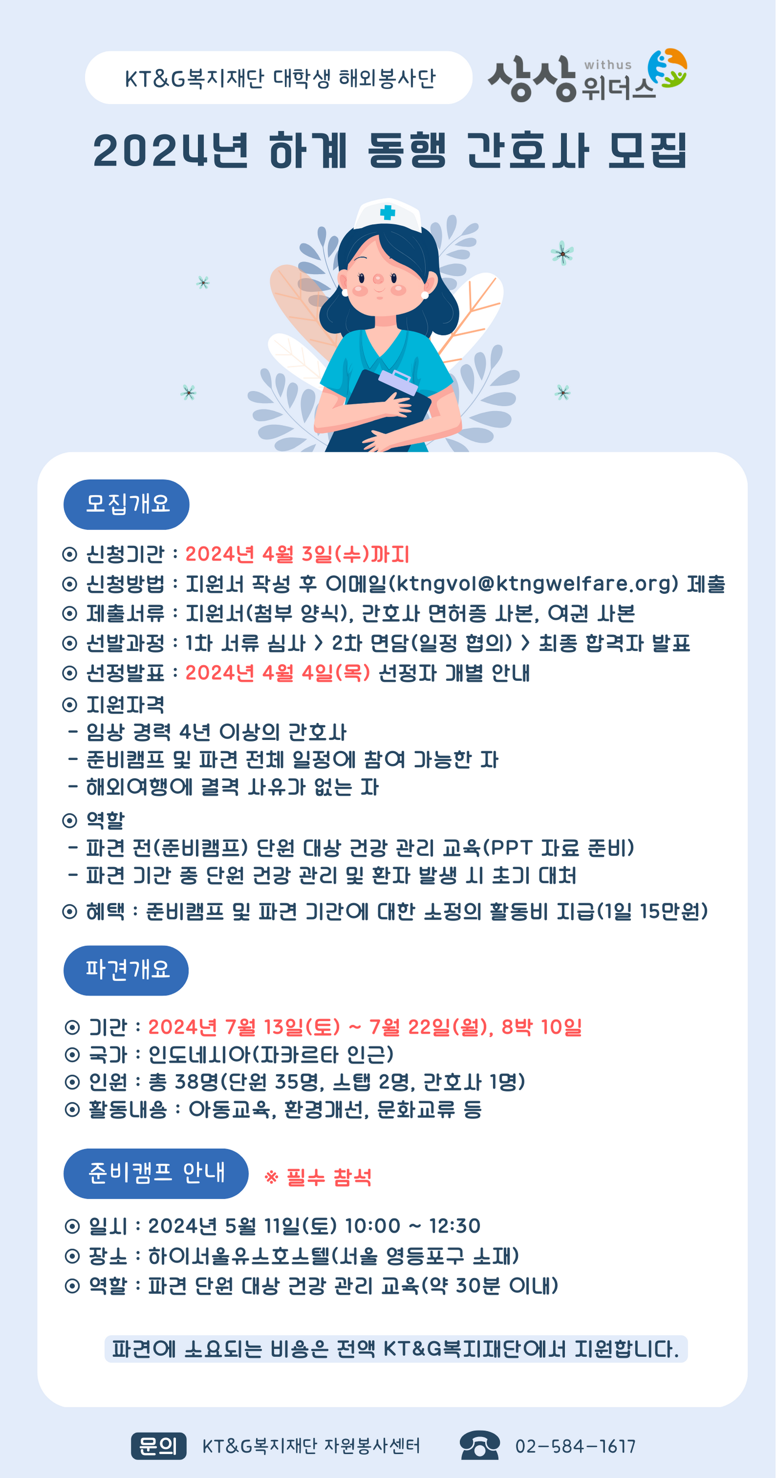 2024년 하계 대학생 해외봉사단 동행 간호사 모집