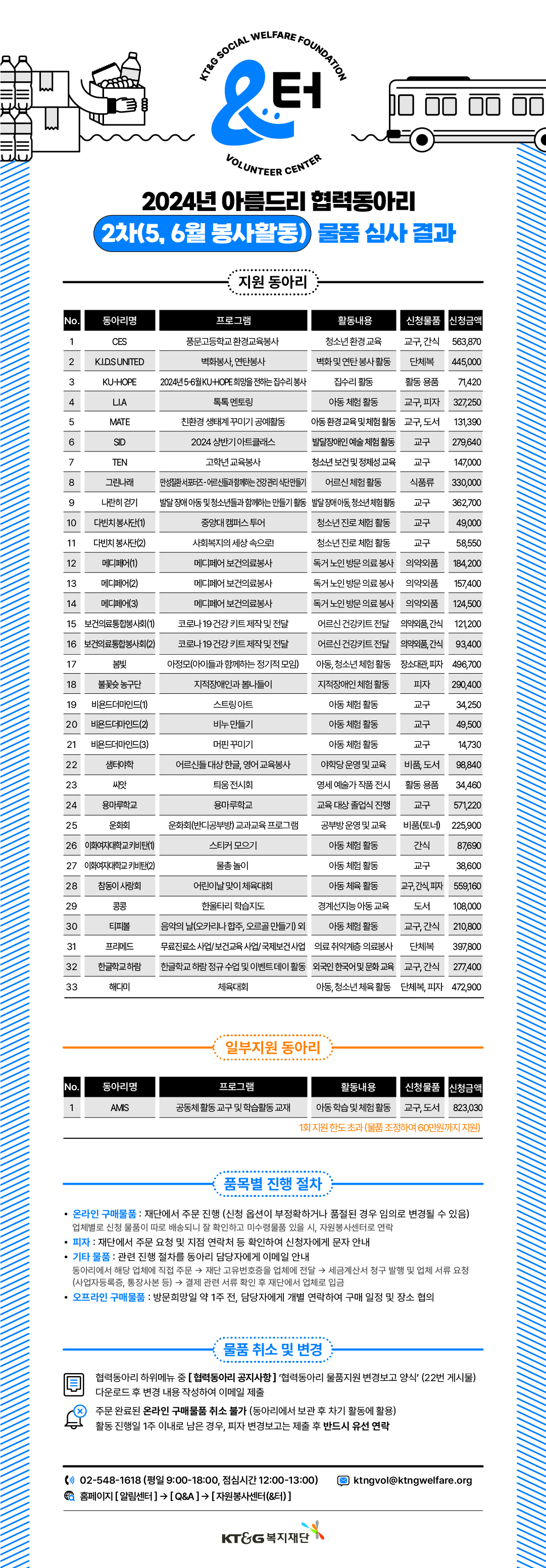 [협력동아리] 2차(5, 6월 봉사활동) 물품 심사 결과