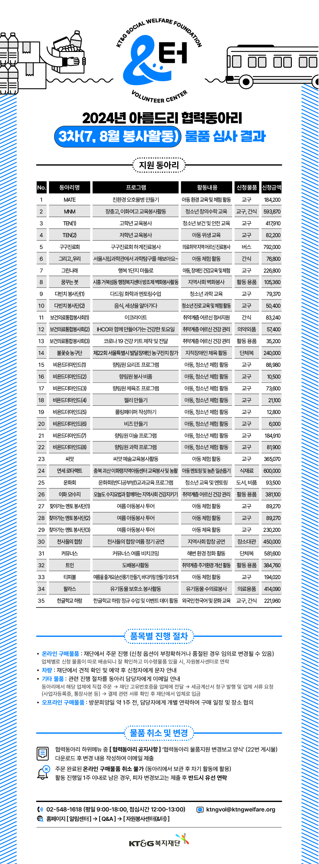 [협력동아리] 3차(7, 8월 봉사활동) 물품 심사 결과