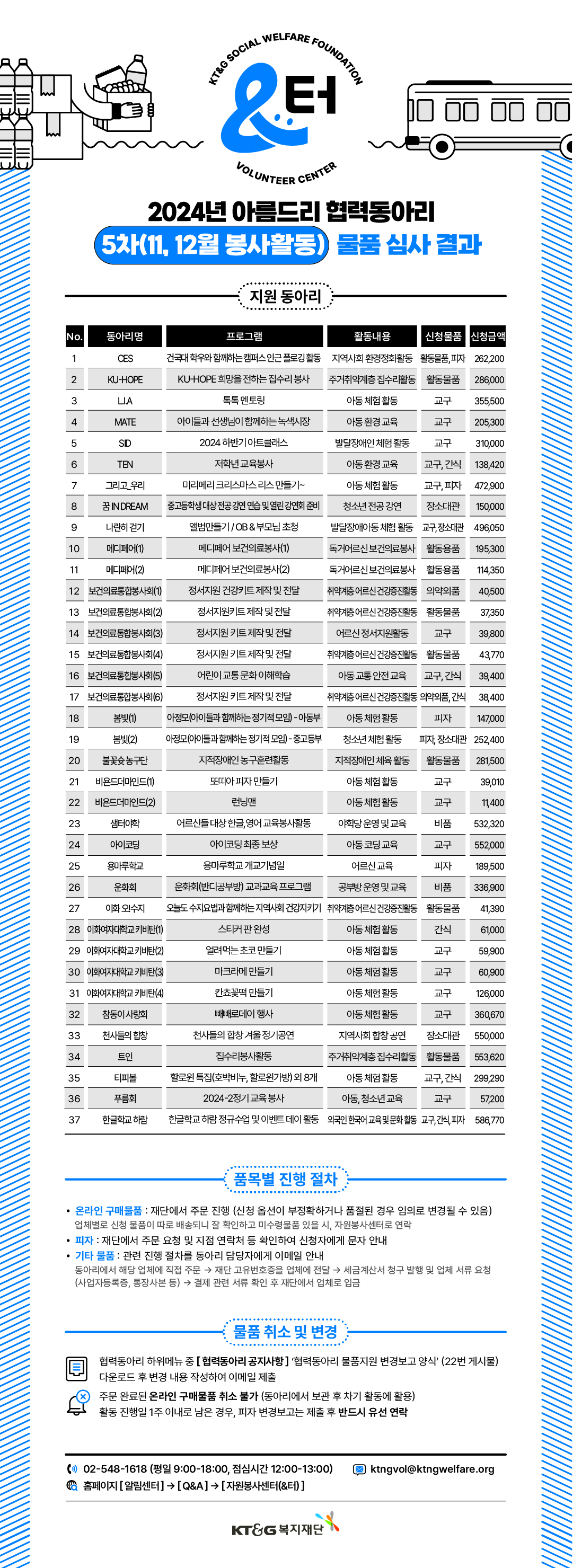 [협력동아리] 5차(11, 12월 봉사활동) 물품 심사 결과