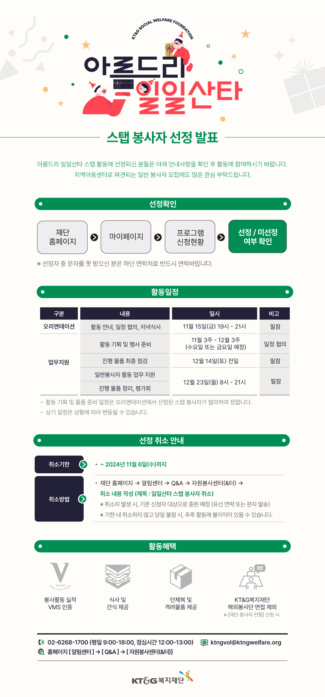 2024년 아름드리 일일산타 〈스탭 봉사자〉 선정 발표